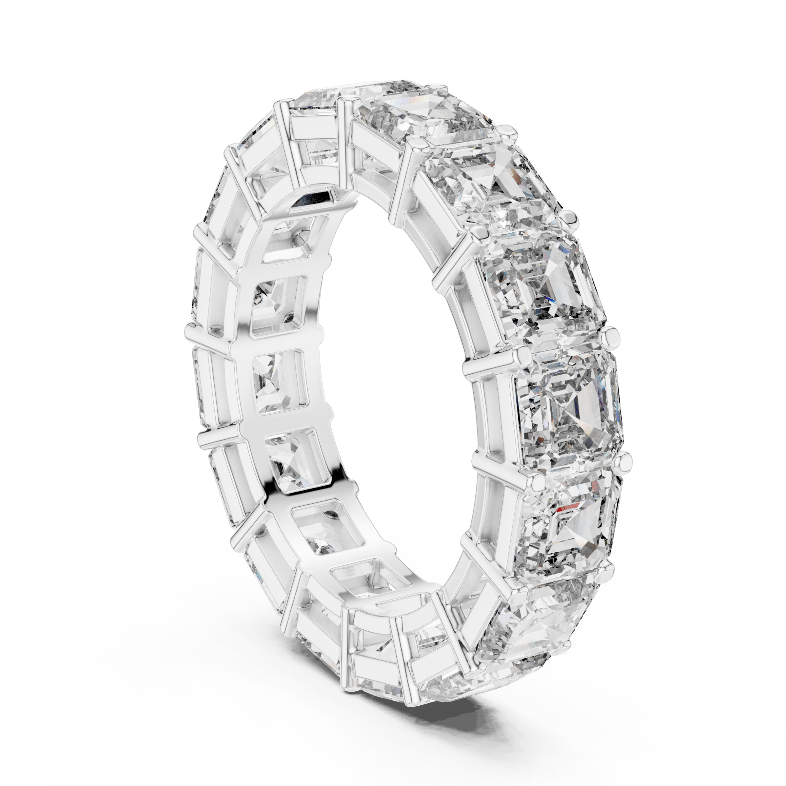 The Asscher Cut Diamond Eternity Band Ring makes a powerful statement. It works beautifully as a unique wedding band, a meaningful anniversary gift, or a standout piece of luxury jewelry. Wear it alone for a bold look or pair it with simpler bands to create contrast.