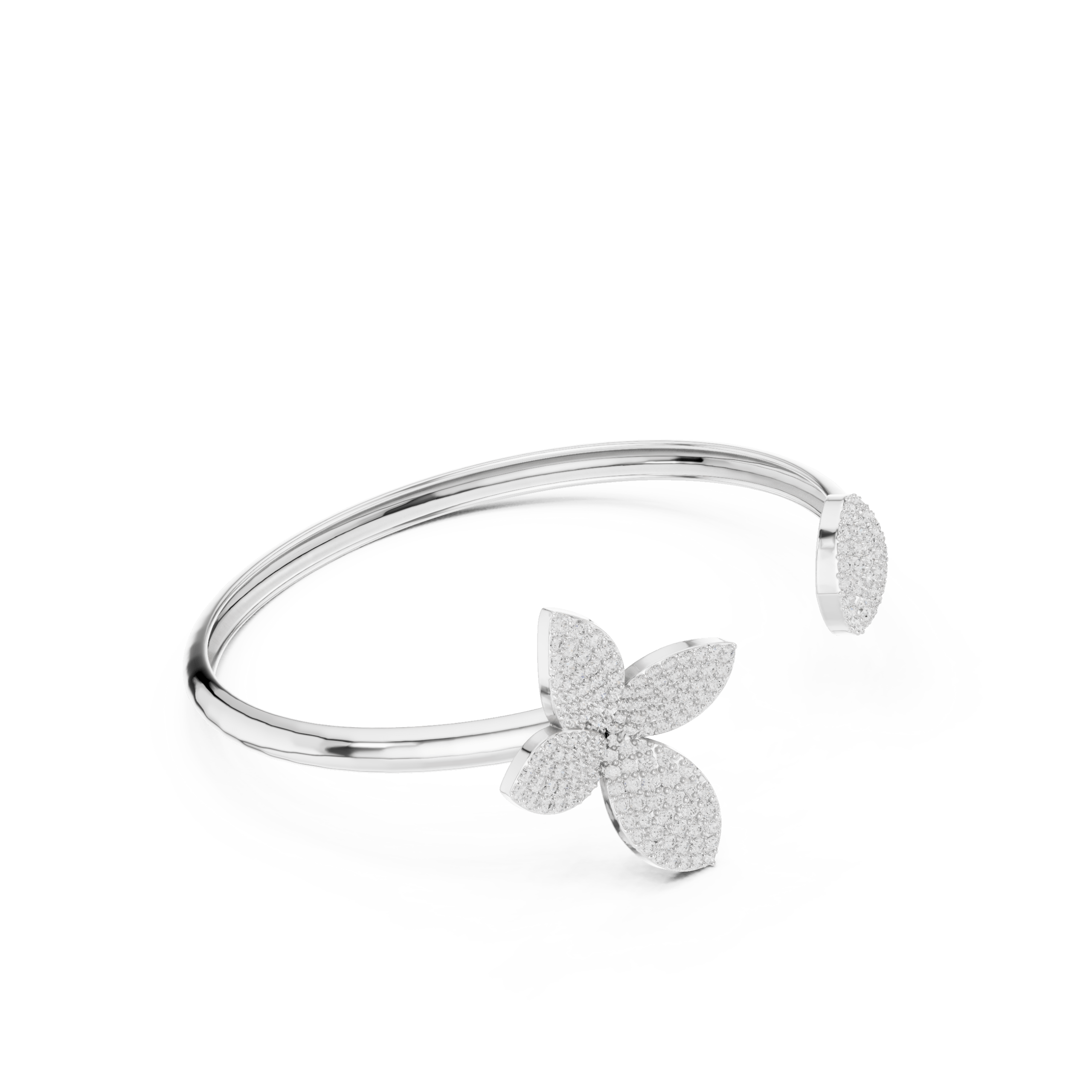 Elegant diamond butterfly open bangle crafted in rose gold, also available in white gold and yellow gold. A timeless luxury design perfect for everyday wear or gifting.