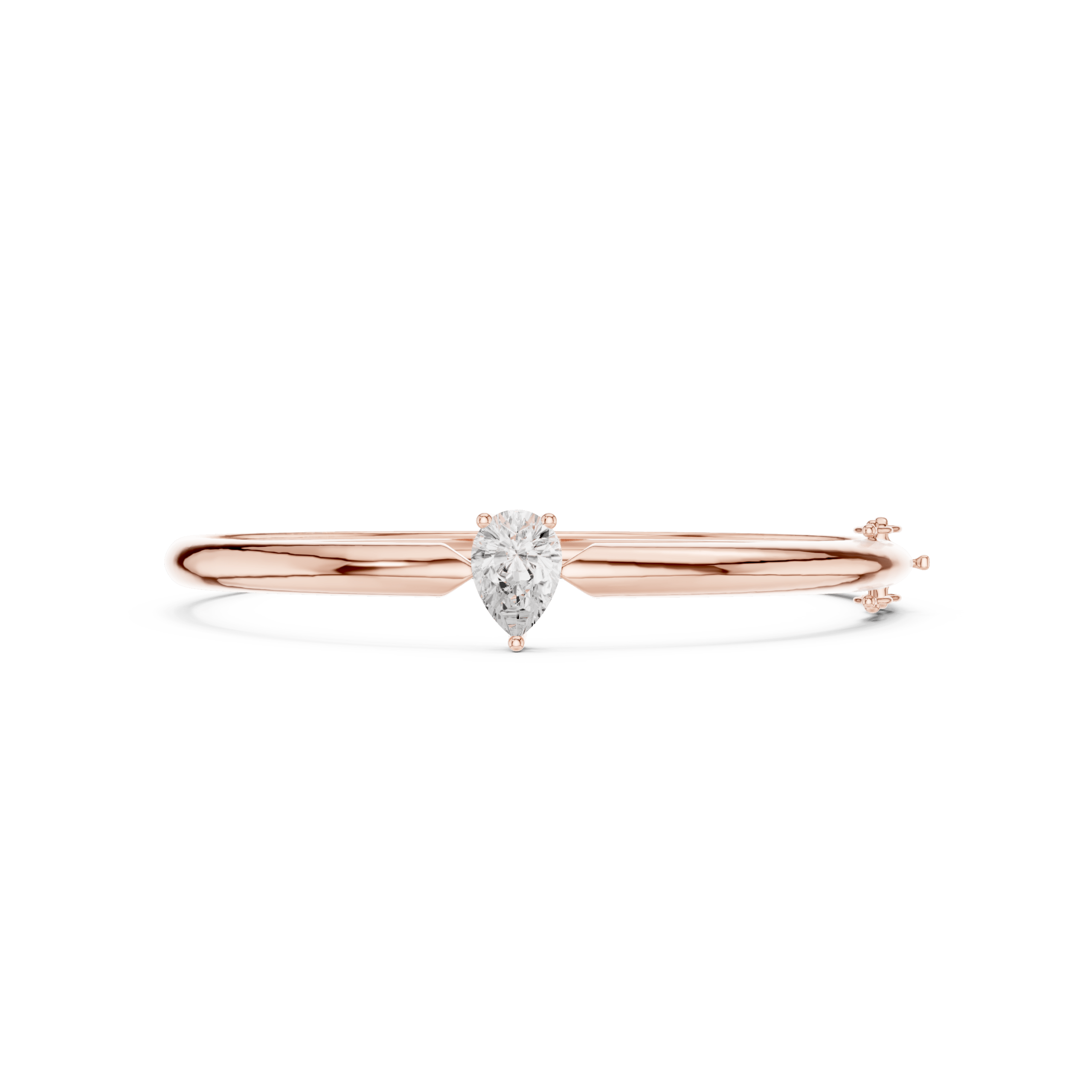Crafted in smooth, high-polish rose gold, the front half of the bangle features a series of beautifully recessed oval motifs. Each oval is meticulously filled with pavé-set round diamonds, positioned low within the design to create a clean, architectural profile. This thoughtful setting enhances sparkle while maintaining a snag-free, comfortable finish that suits daily wear.