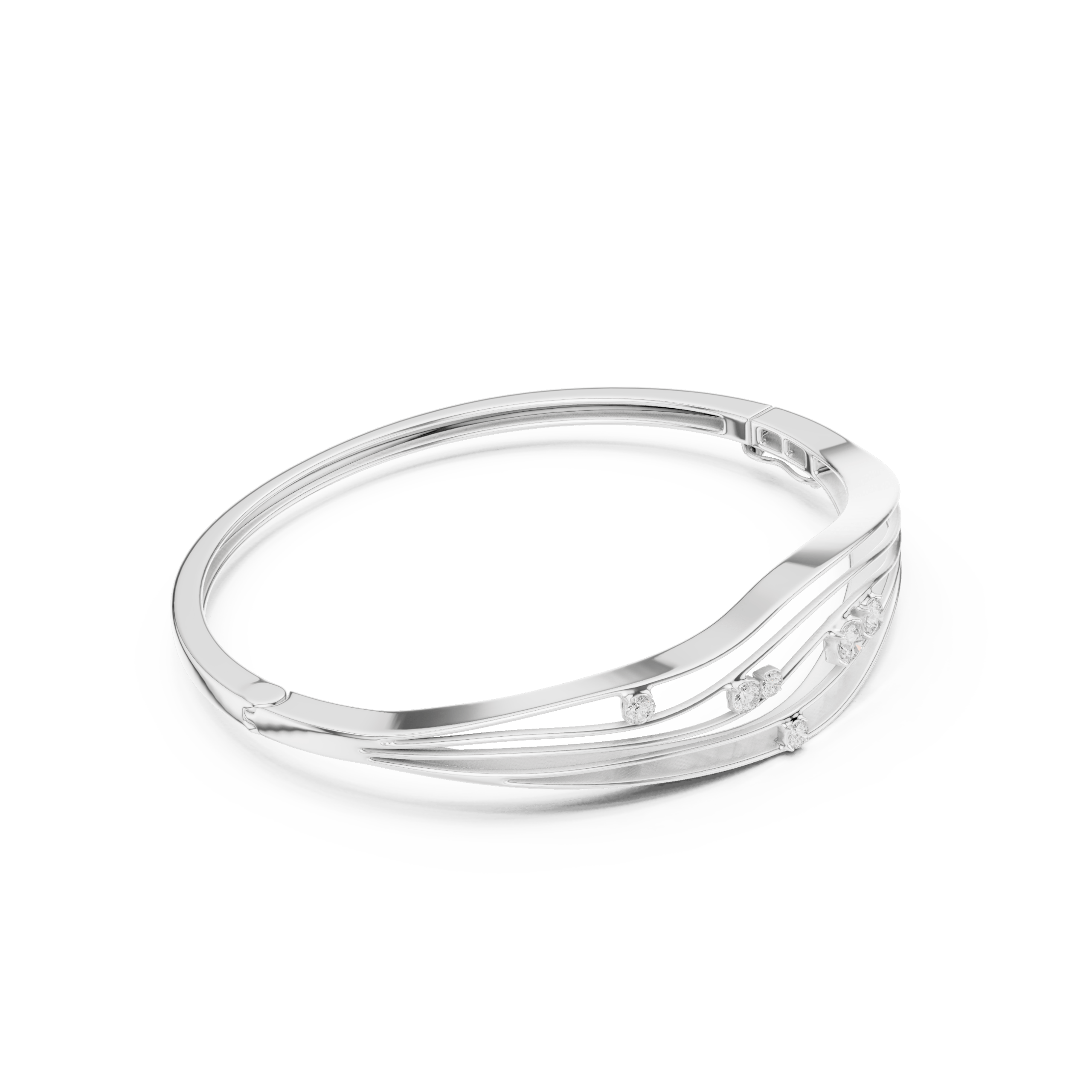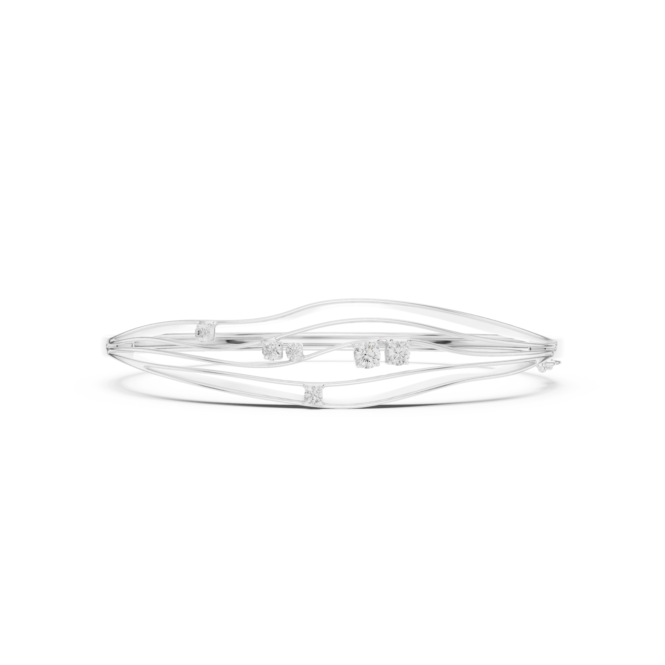 The clean, balanced design makes this bangle an ideal choice for both minimalists and those who love refined sparkle. It pairs beautifully with diamond tennis bracelets, classic gold bangles, or can be worn alone for a polished, understated look. Whether styled with formal attire or casual outfits, this piece adds effortless sophistication.