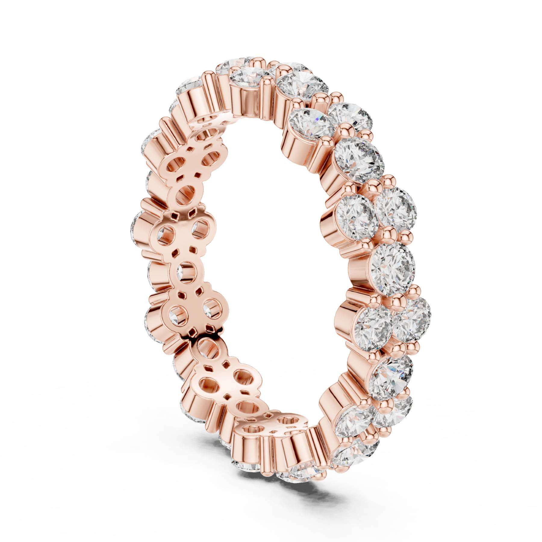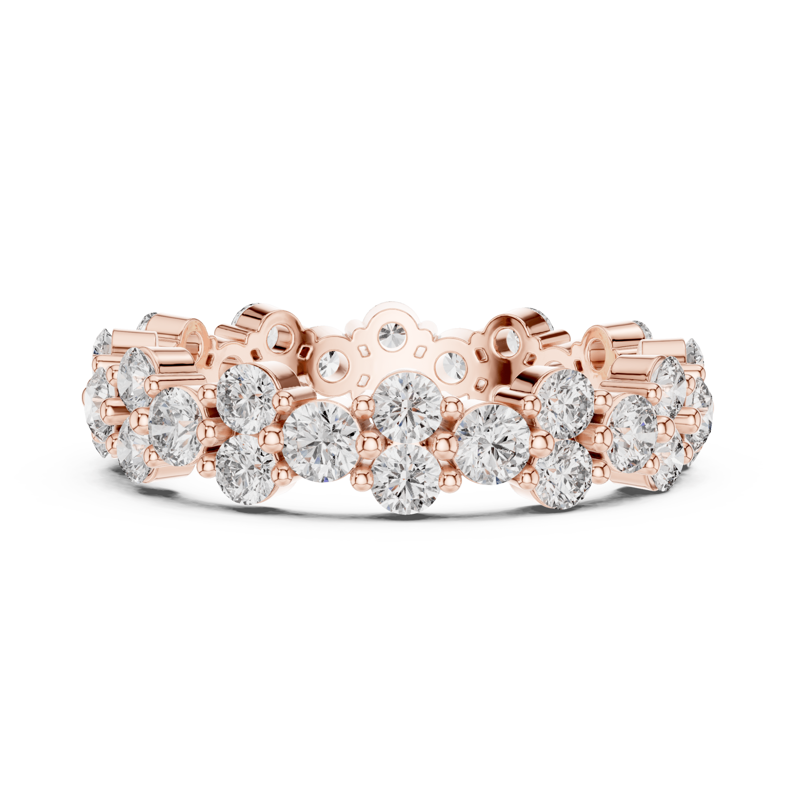 Crafted in luxurious 18K rose gold, this eternity band feels warm and romantic. The smooth structure offers comfort for daily wear while maintaining a bold appearance. You can also choose white gold or yellow gold to match your personal style or existing jewelry.