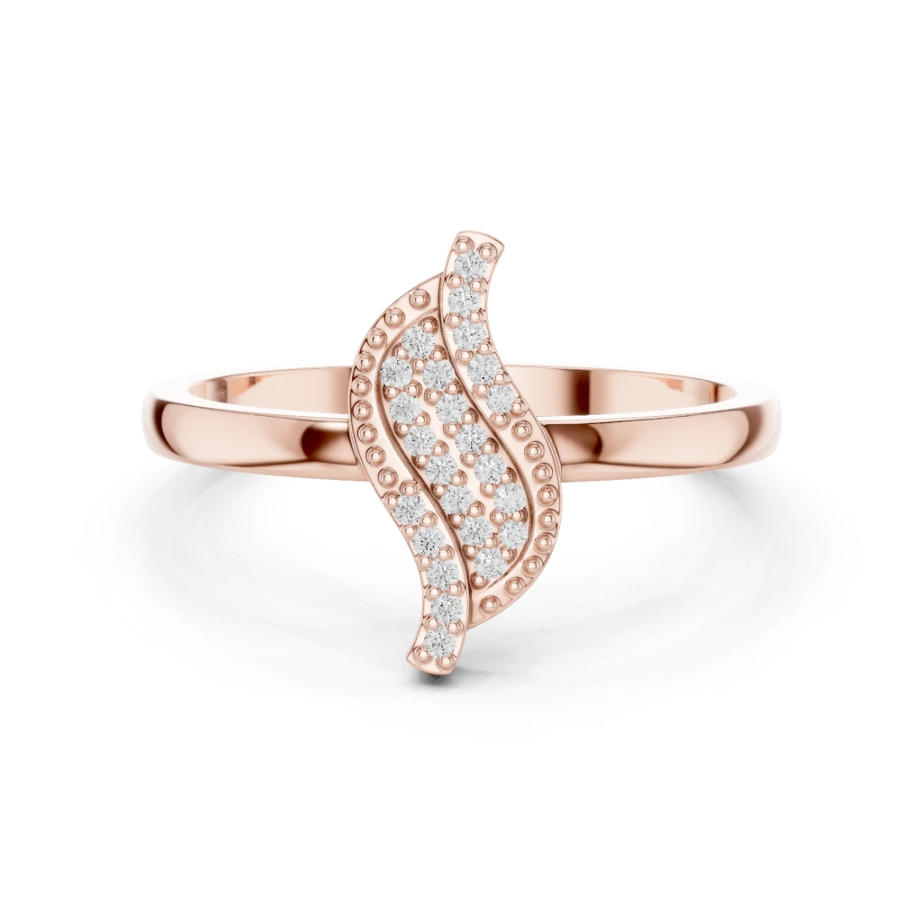 Crafted in luxurious rose gold, the marquise frame is layered with precision to create depth and dimension. Tiny pave-set diamonds cover the surface, allowing light to reflect from every angle. As a result, the ring delivers continuous shimmer without overpowering the delicate design. The fine bead-set edges add texture while keeping the overall look soft and feminine.