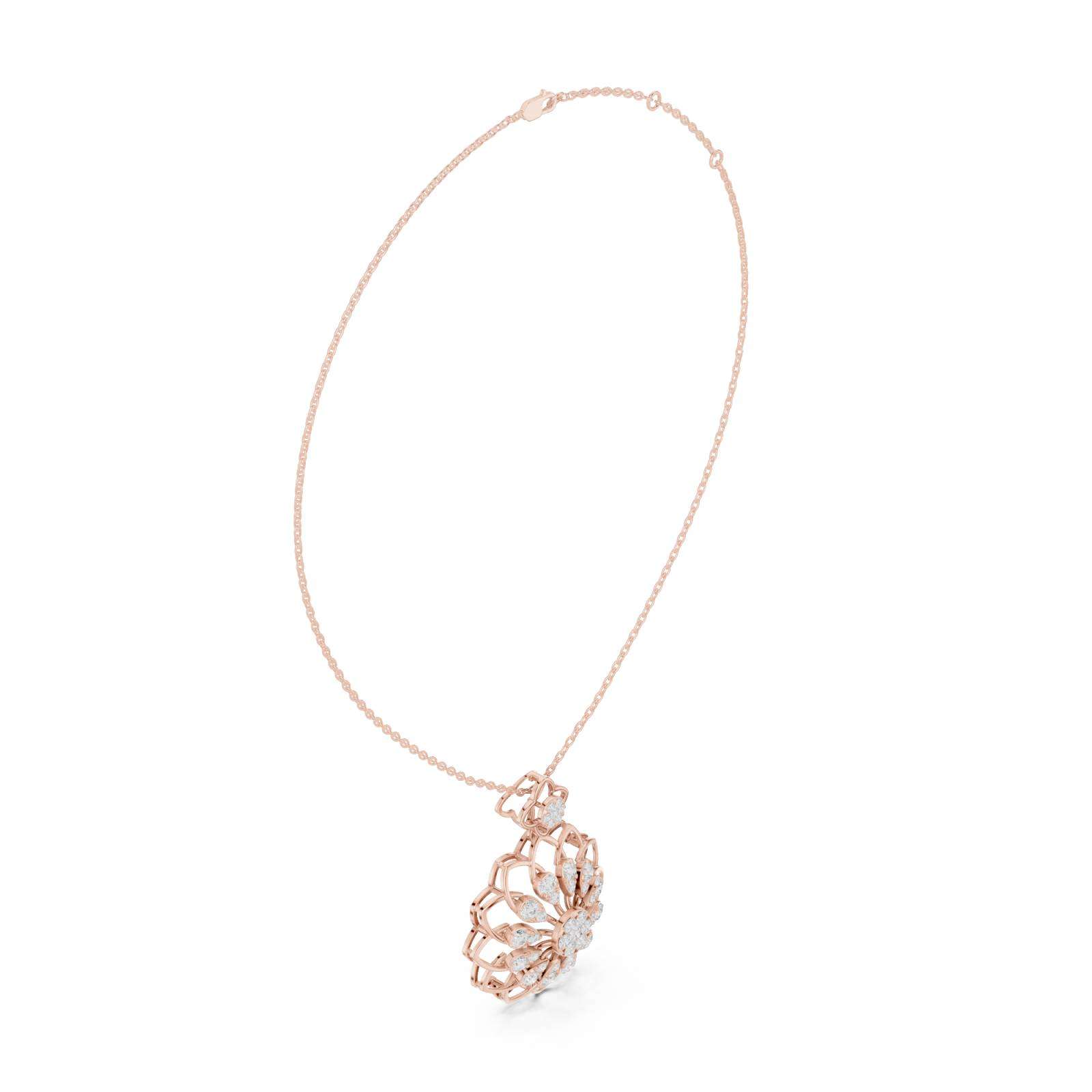A luxurious Petal Bloom Diamond Pendant Necklace featuring an openwork floral design adorned with brilliant diamonds, crafted in rose gold and also available in yellow and white gold.