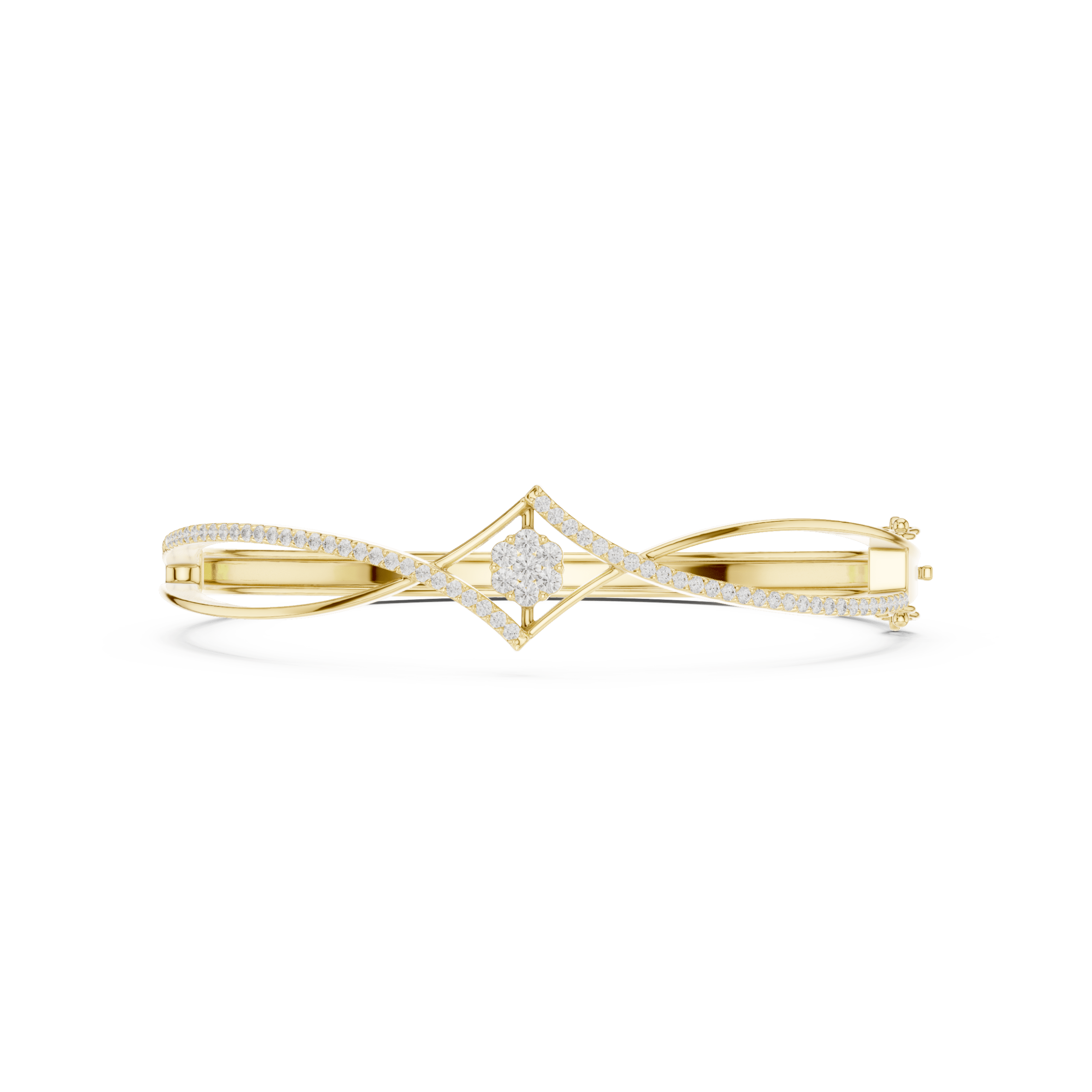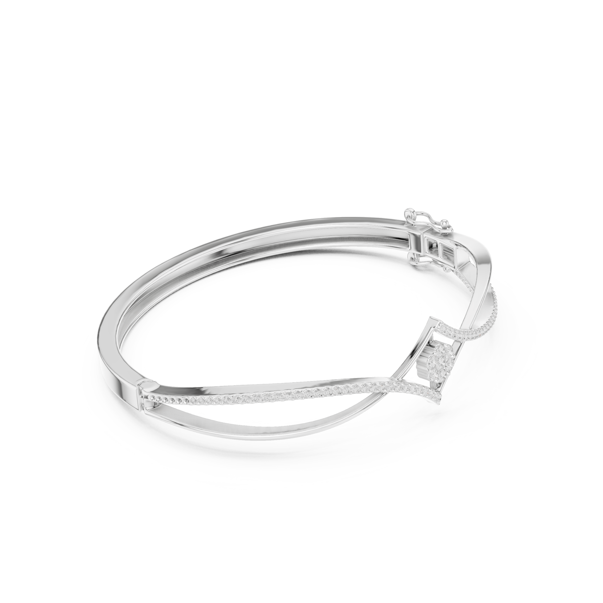 Designed with both style and comfort in mind, the hinged bangle features a secure clasp, ensuring it stays comfortably on the wrist while maintaining its sleek profile. The combination of baguette and pave diamonds provides a timeless aesthetic, making this bangle ideal for both everyday elegance and special occasions. Its versatile design also allows it to be paired with other bracelets for a layered, fashionable look.