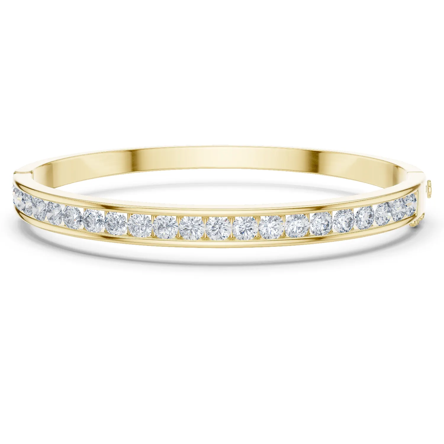 Each diamond is securely set in a durable prong setting, designed to enhance sparkle while preventing snags. The braceletās smooth, polished finish offers comfort and style for all-day wear. Whether youāre attending a formal event or elevating your daily look, this diamond bangle adds effortless luxury to any outfit.