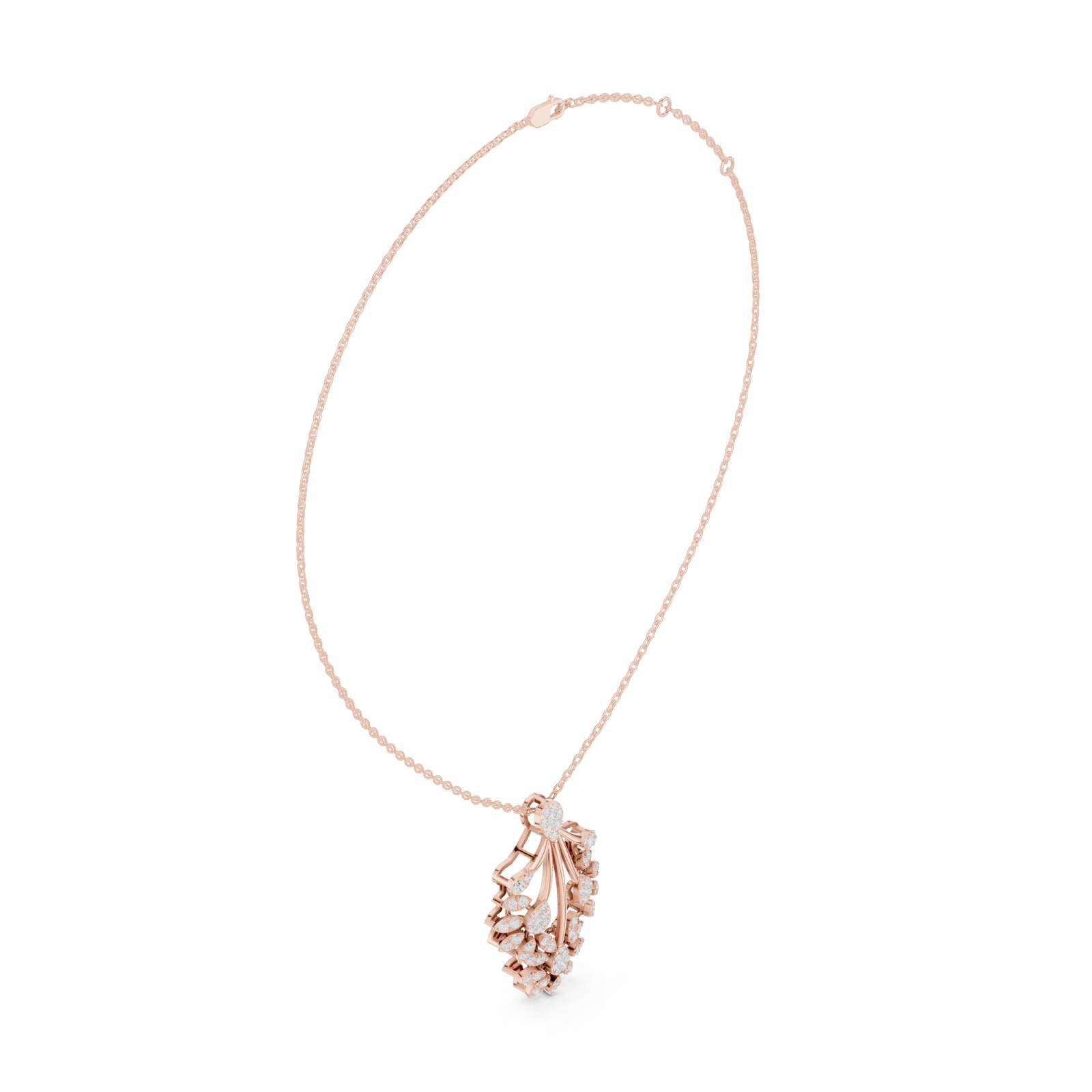 Make a statement with the Rose Gold Diamond Plume Pendant Necklace from Diora Jewels, a piece that blends contemporary design with natural elegance. Diora Jewels carefully crafts each pendant in polished rose gold, forming a flowing, elongated shape reminiscent of feathers or leaf clusters.