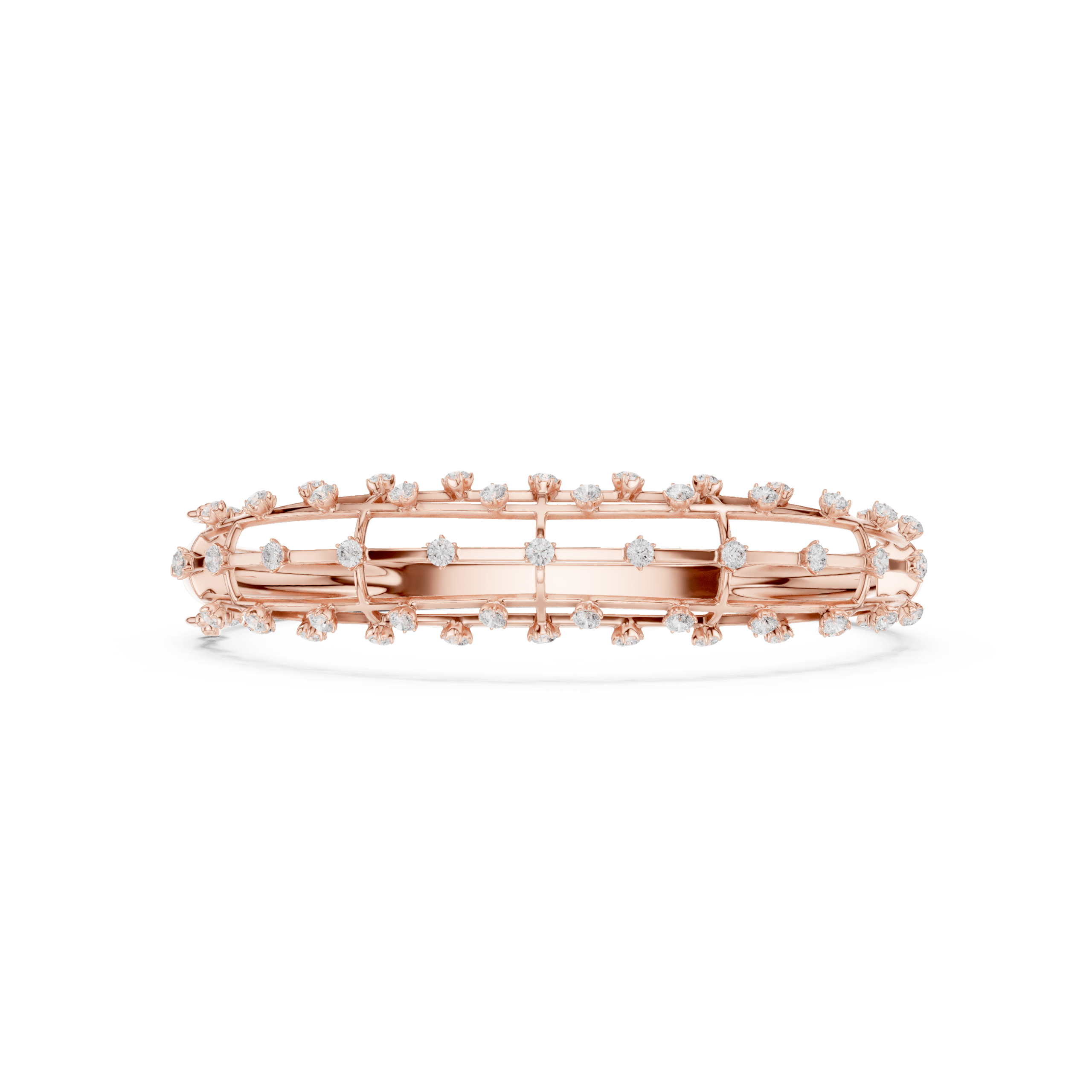 Rose Gold Double Row Pave Diamond Bangle