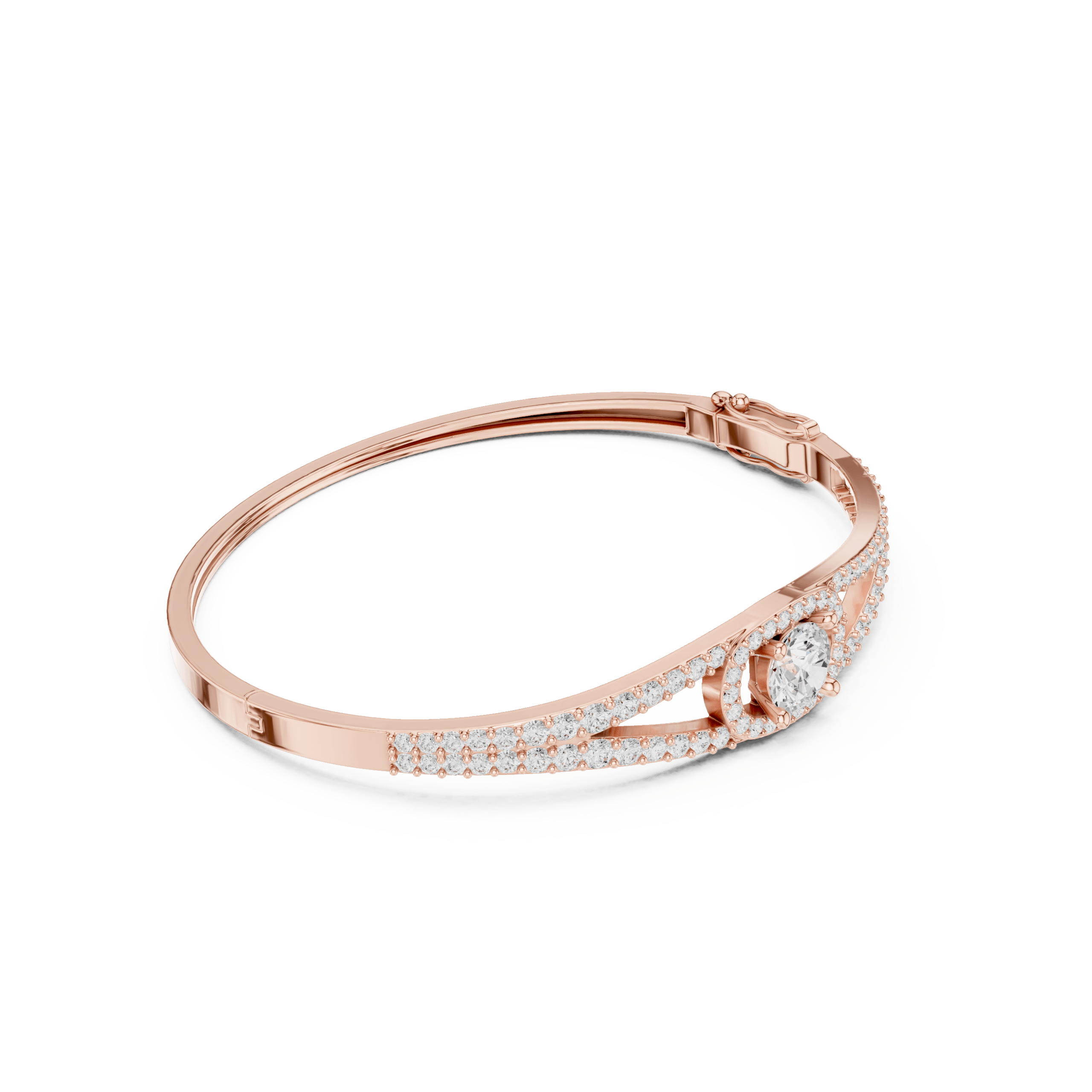Modern Rose Gold Pave Diamond Bangle
