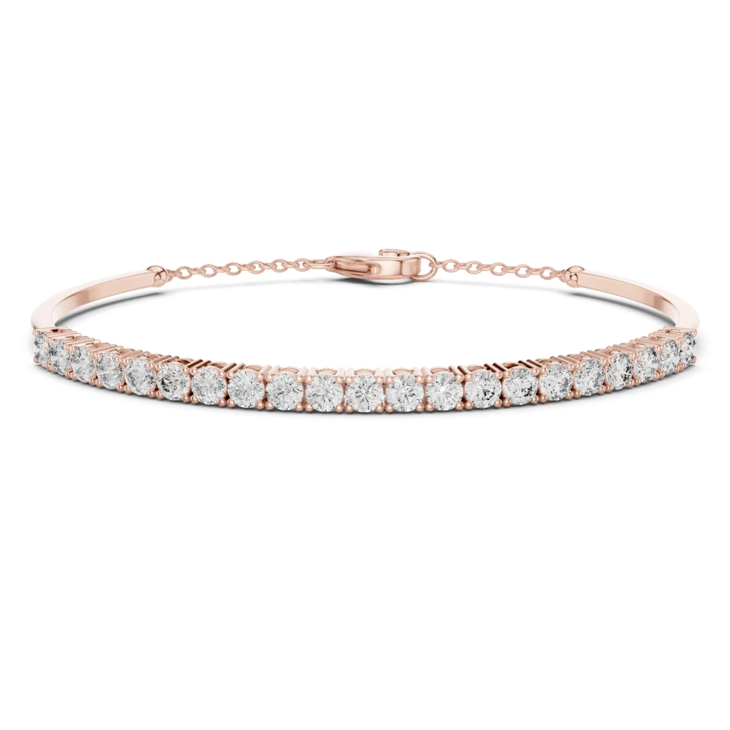 Each Round Brilliant Diamond is hand-selected for exceptional fire and brilliance, meticulously set in luminous Rose Gold. The rigid front bar showcases a continuous line of sparkling diamonds, while the adjustable chain allows for a customized fit, ensuring the diamond section remains perfectly centered and the bracelet feels secure yet flexible on the wrist.