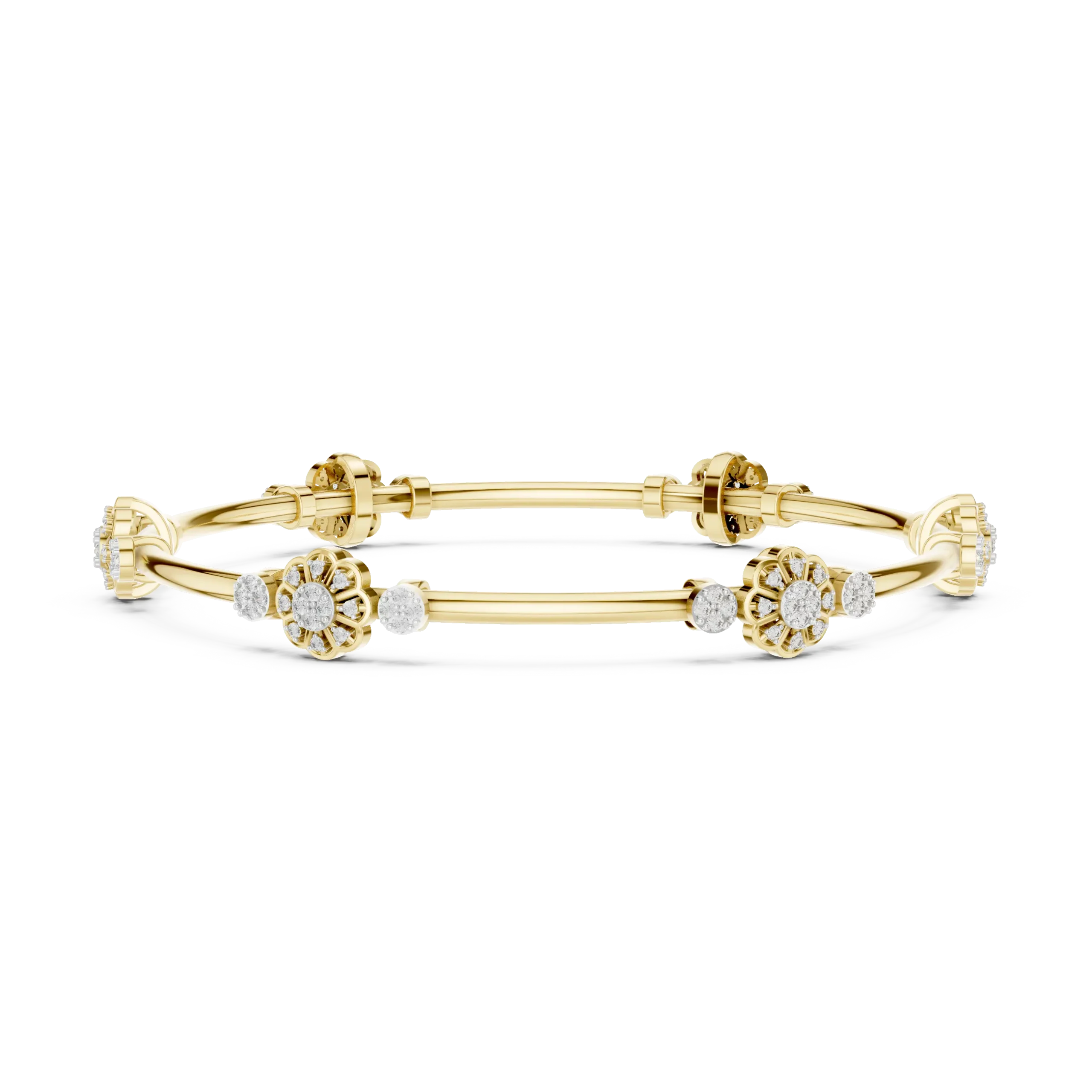 The Rose Gold Diamond Floral Knot Bangle by Diora Jewels reflects the essence of modern femininity — refined, radiant, and timeless. Each curve and contour reveals a story of craftsmanship, blending classic charm with contemporary design.