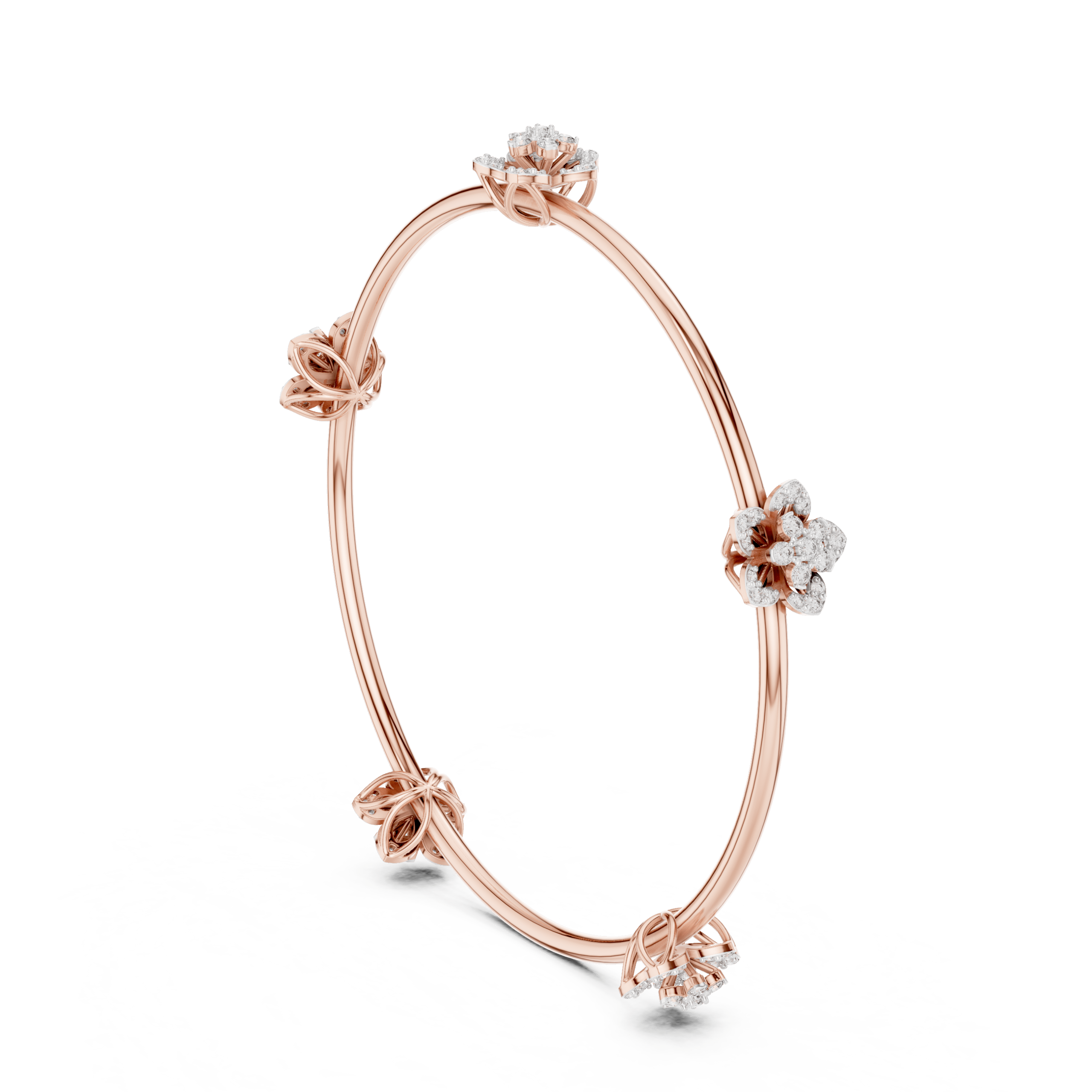 The Rose Gold Floral Cluster Diamond Bangle is a graceful expression of femininity, elegance, and refined craftsmanship. Designed to add a delicate sparkle to the wrist, this timeless piece blends natural inspiration with modern sophistication.