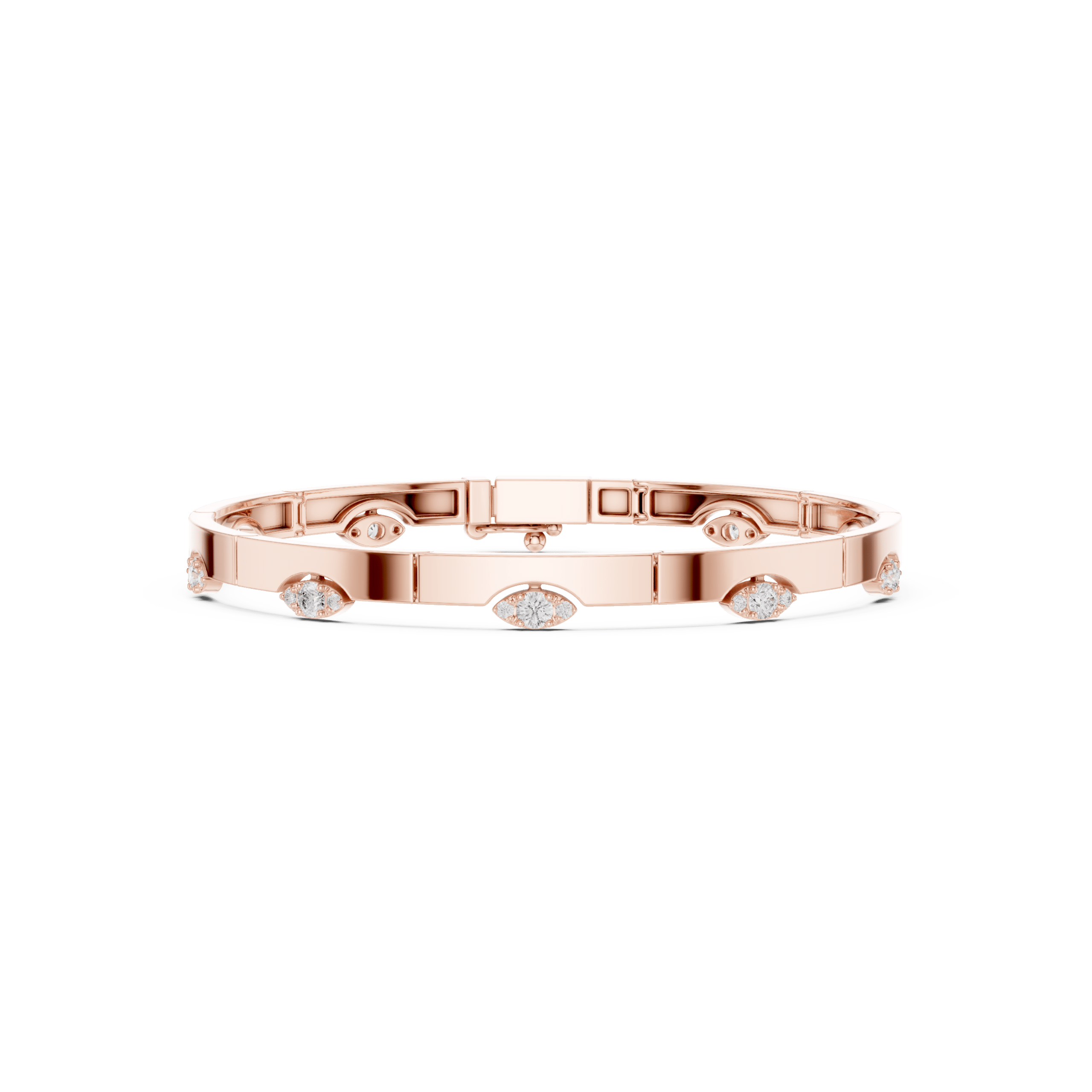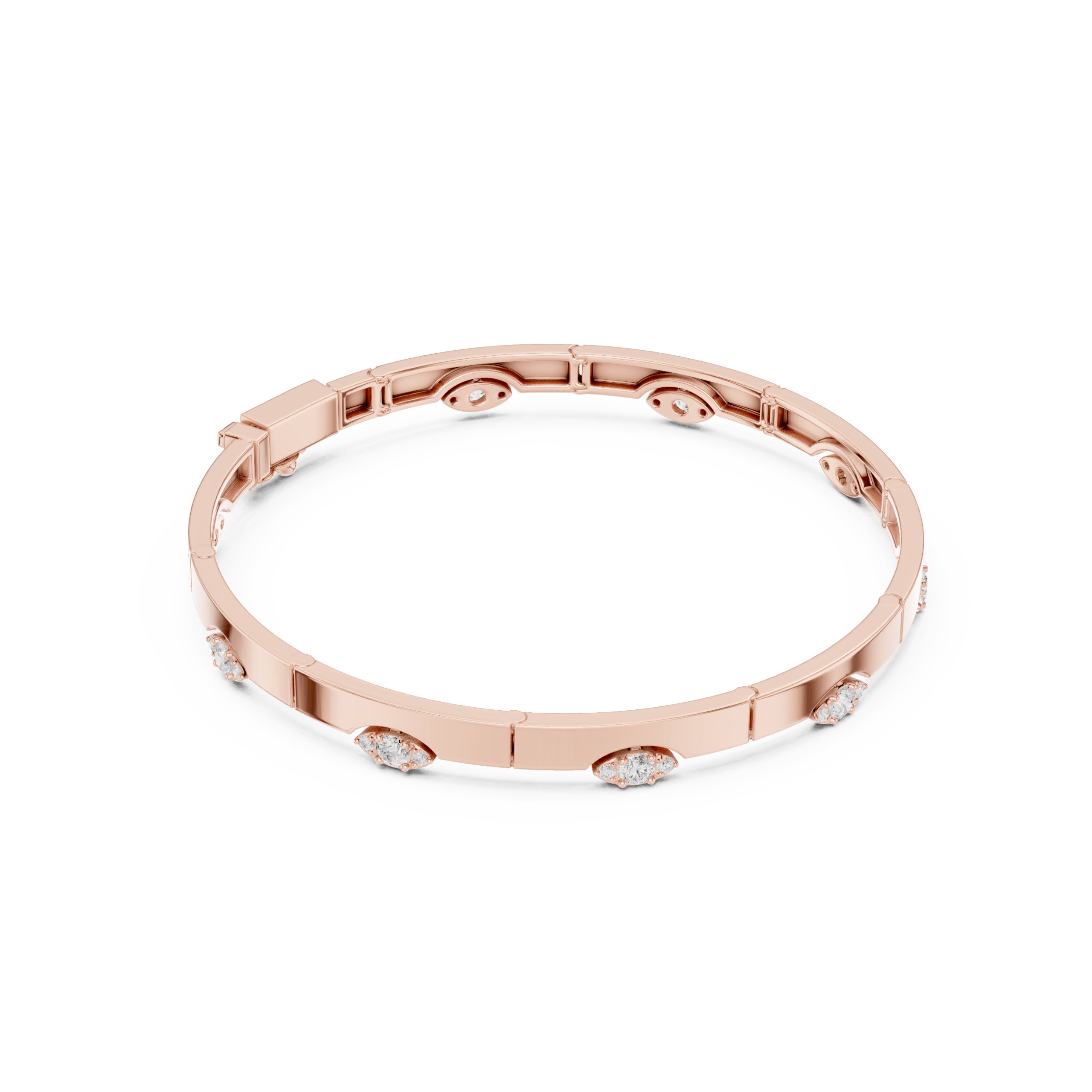 The Rose Gold Multi-Shape Diamond Open Cuff** is a contemporary jewelry masterpiece. It is designed for those who appreciate artistry, innovation, and luxury. Crafted from high-polish rose gold, this rigid open cuff offers a sleek, modern silhouette. At the same time, it remains comfortable for everyday wear. Its bold yet refined design celebrates the beauty and diversity of diamond shapes. Consequently, it creates a statement piece that captivates from every angle.