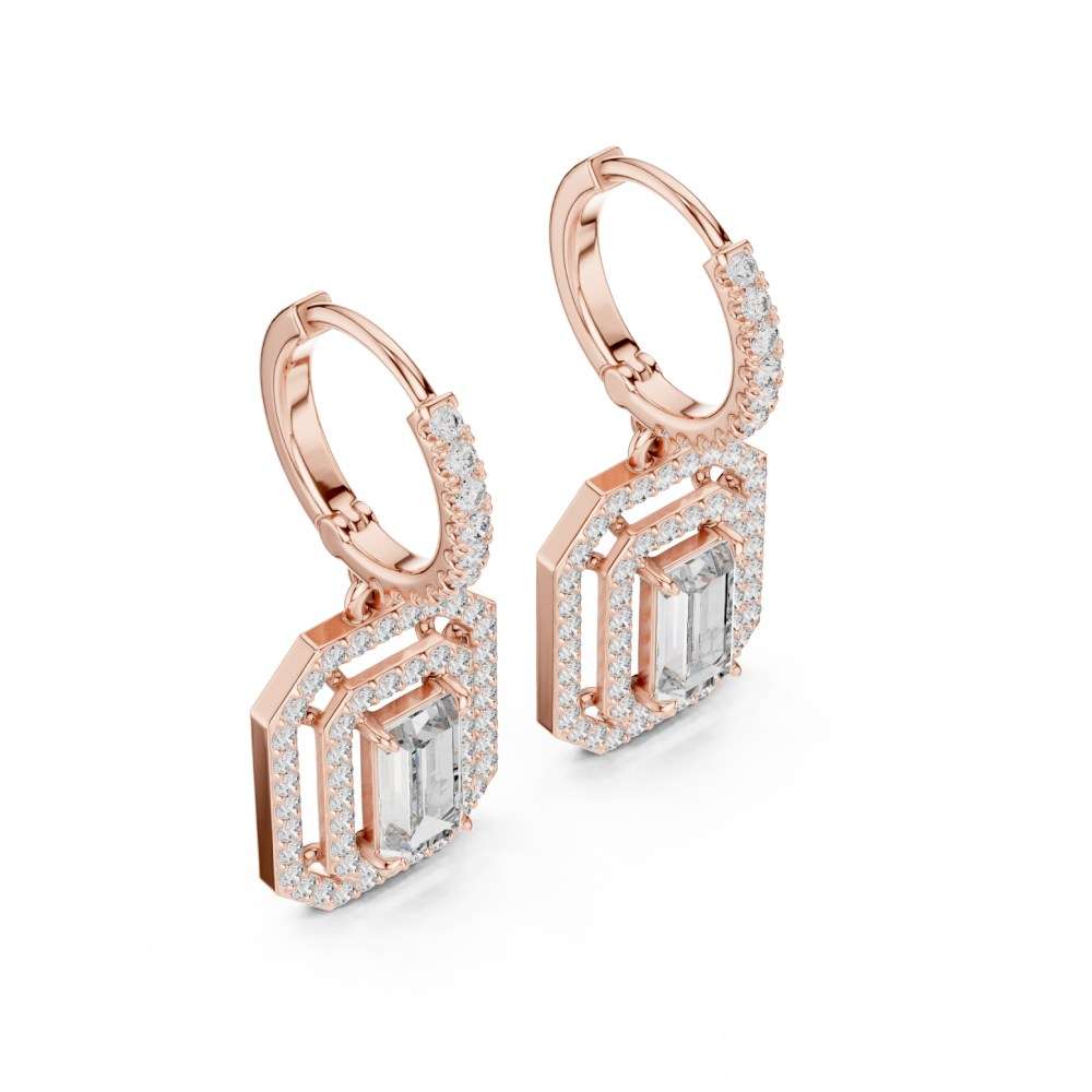 The Rose Gold Octagonal Emerald-Cut Diamond Drop Earrings