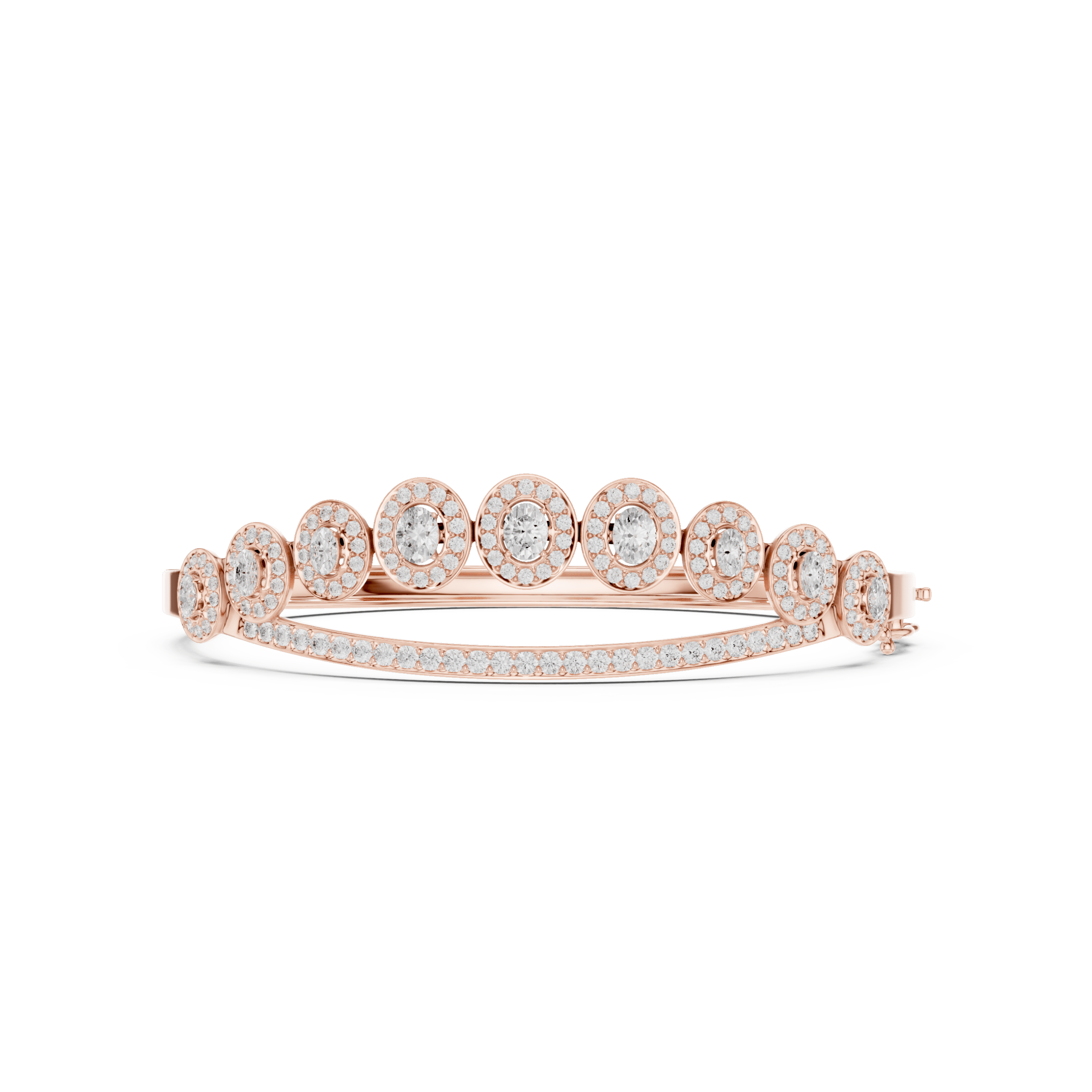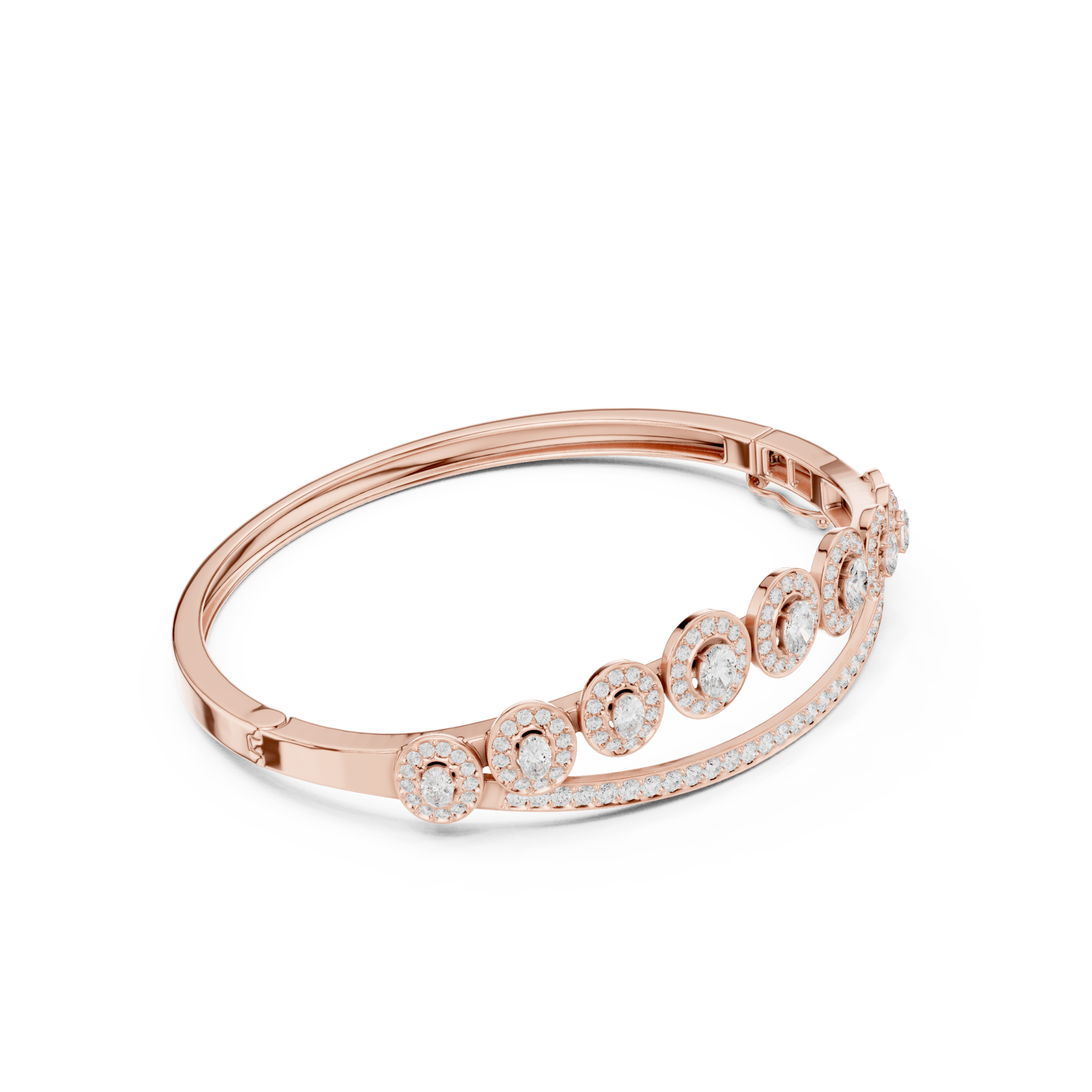The warm rose gold tone complements the brilliance of the diamonds, adding sophistication and a subtle glow that enhances any outfit. Whether for gifting on a special occasion or elevating your own jewelry collection, the Rose Gold Open Circle Diamond Cuff Bangle represents timeless style with a modern twist.