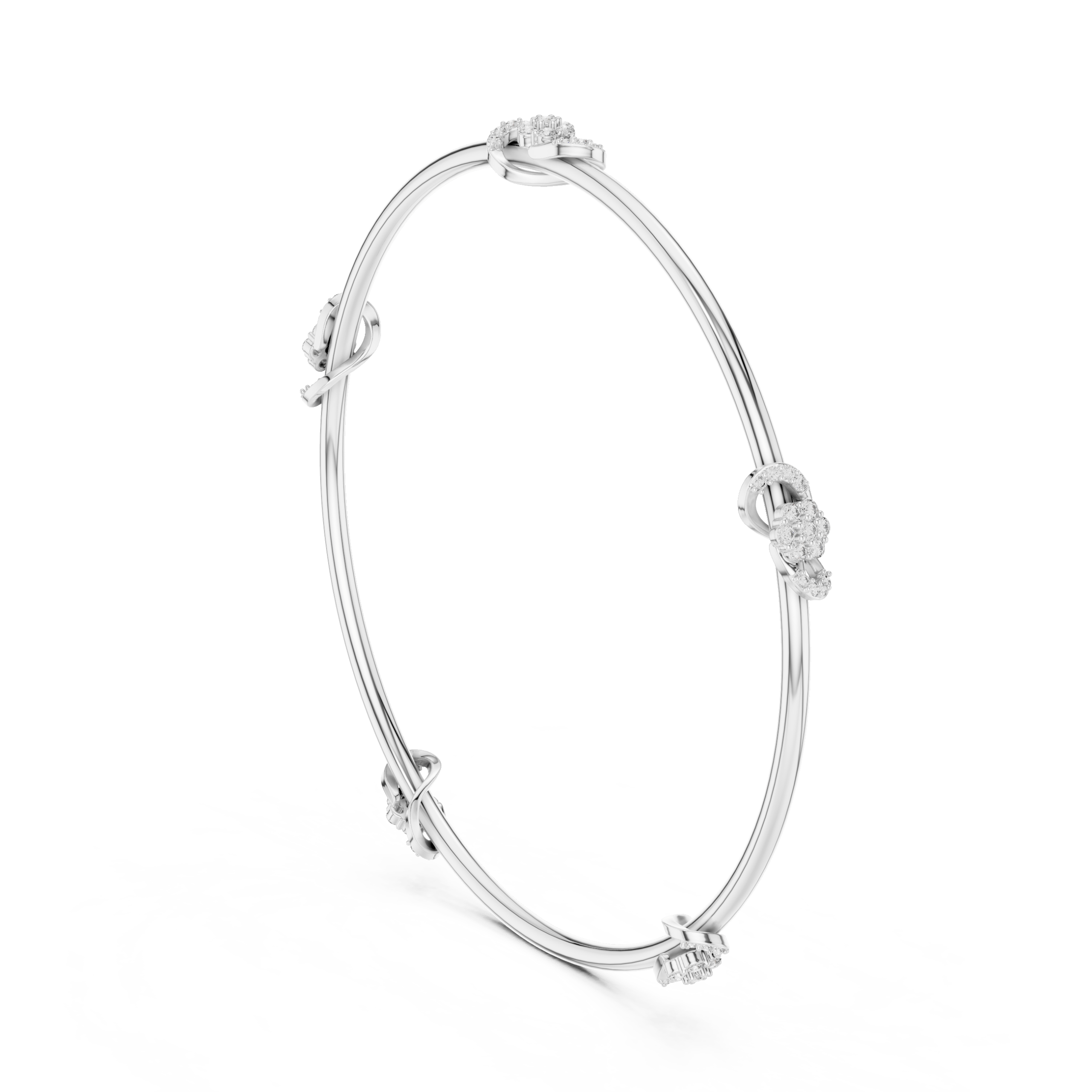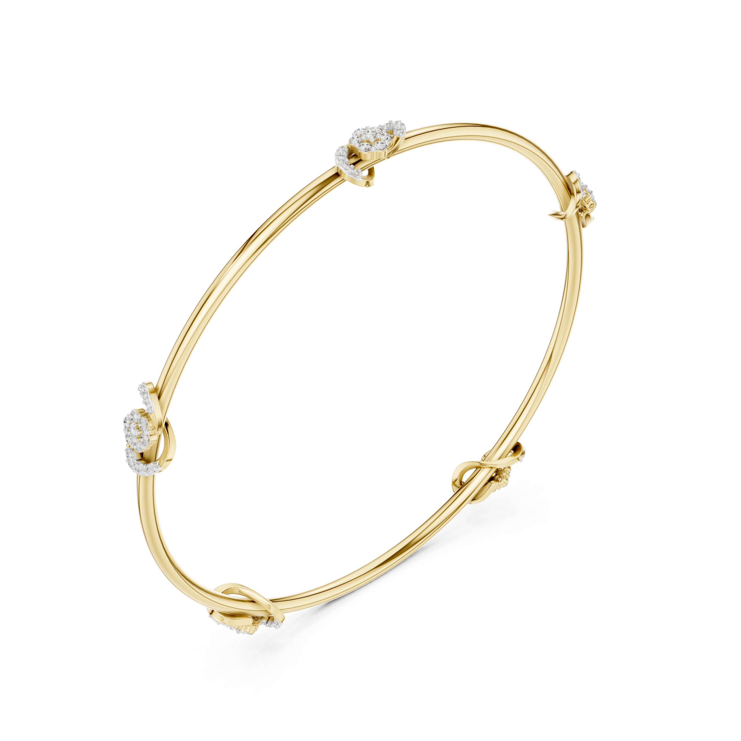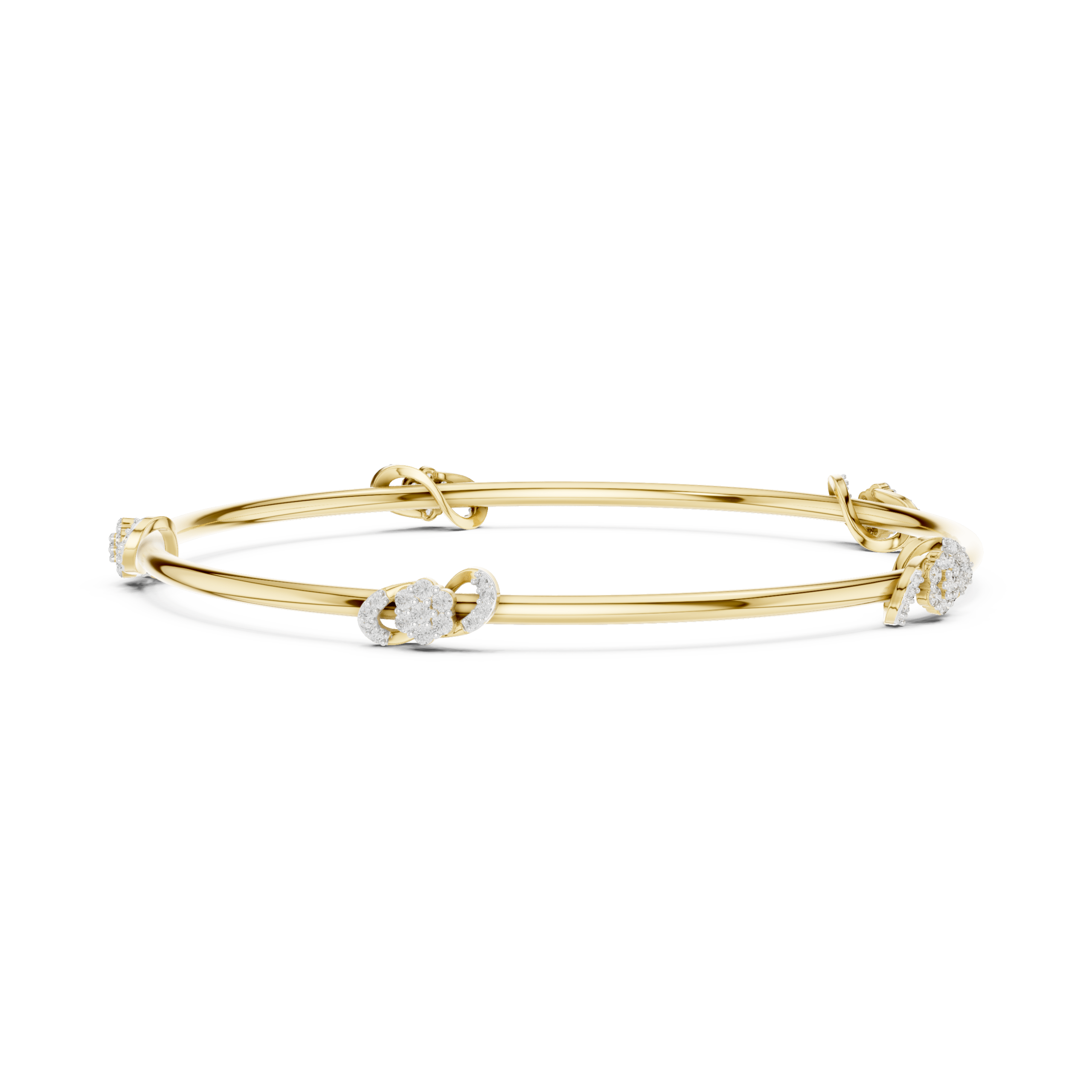 This diamond knot bangle is ideal for layering with plain gold bangles or pairing with other diamond bracelets for a curated look. When worn alone, it delivers a refined statement that complements both casual and formal ensembles.