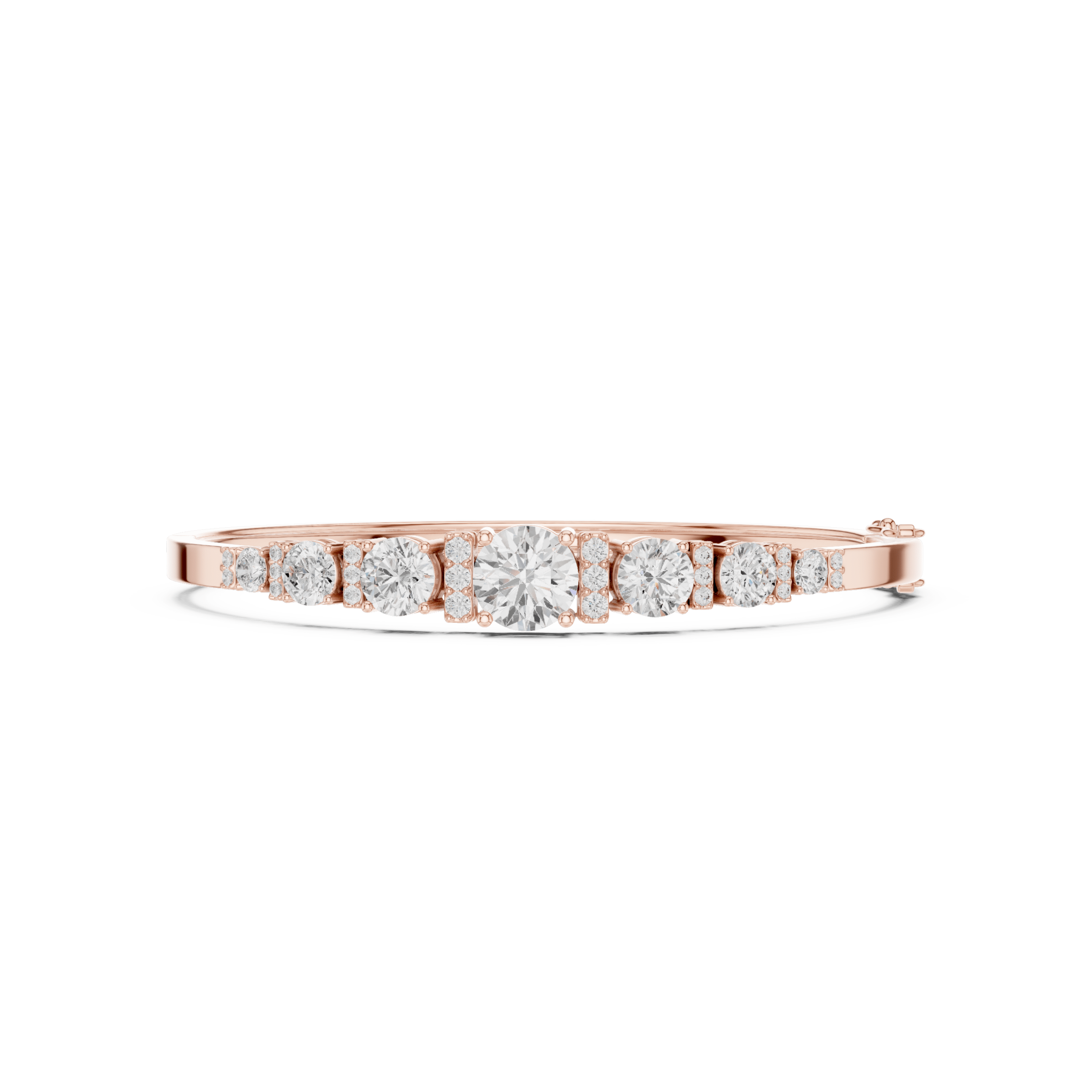 Designed for comfort and versatility, the bangleās hinged construction ensures a secure fit while allowing for easy wear. It pairs beautifully with other bracelets for a layered look or can stand alone as a striking statement piece. The harmonious combination of rose gold and diamonds makes it suitable for all skin tones and personal styles, offering both elegance and contemporary sophistication.